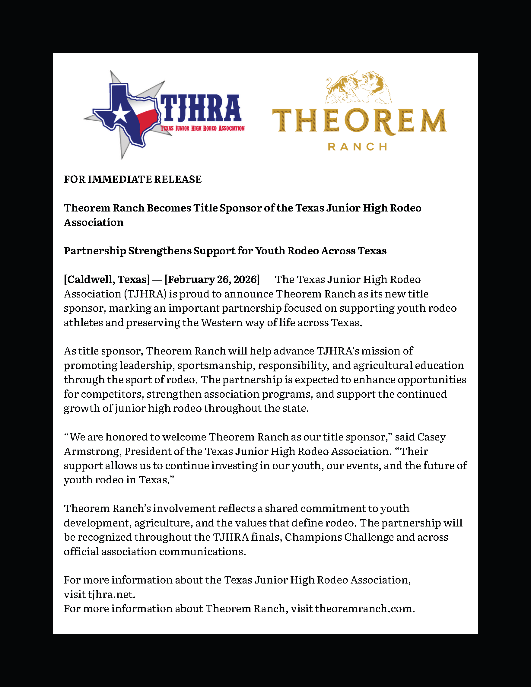 The Texas Junior High School Rodeo Association is committed to the betterment of the community, furthering the organization’s mission statement to offer the youth of tomorrow in grades 5th – 8th a chance to be competitive student athletes while expecting the highest of scholastic achievement accountability in the classroom and sportsmen in the arena. The Texas Junior High Rodeo Association is proud to mentor and guide our members to achieve good morals while learning a work ethic in and out of the arenas in Texas representing 10 Regions. With a clear vision of the future, and a successful past we will continue to be a pillar of strength supporting the youth of Texas.